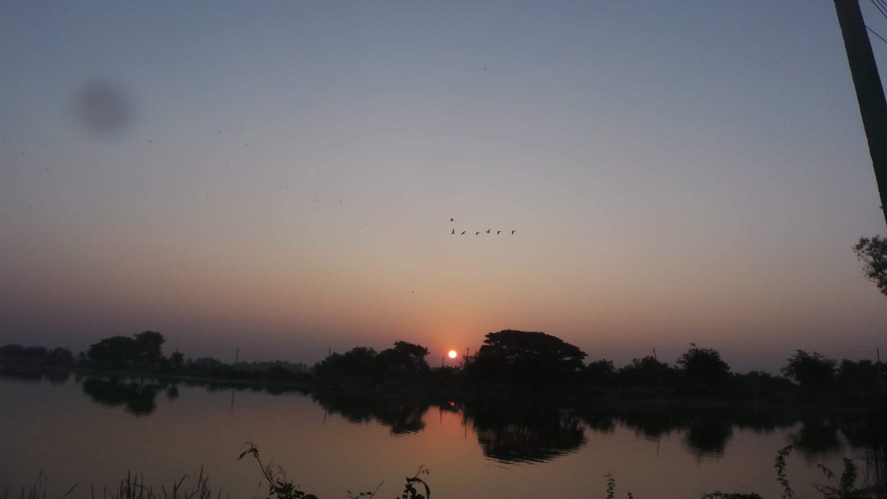 An early morning visit on Christmas , saw us spotting the birds from far against the rising sun , the birds having exiting the lake around 6AM. The leader just gave out a quack and behind them was the group following their leader . One, two, three , the groups just went off for their breakfast . Could just make out the shiloutte of these birds , as the morning sun was not very clear . The main lake wasn’t yet opened, it would be opened around 8AM , informed the security at the lake